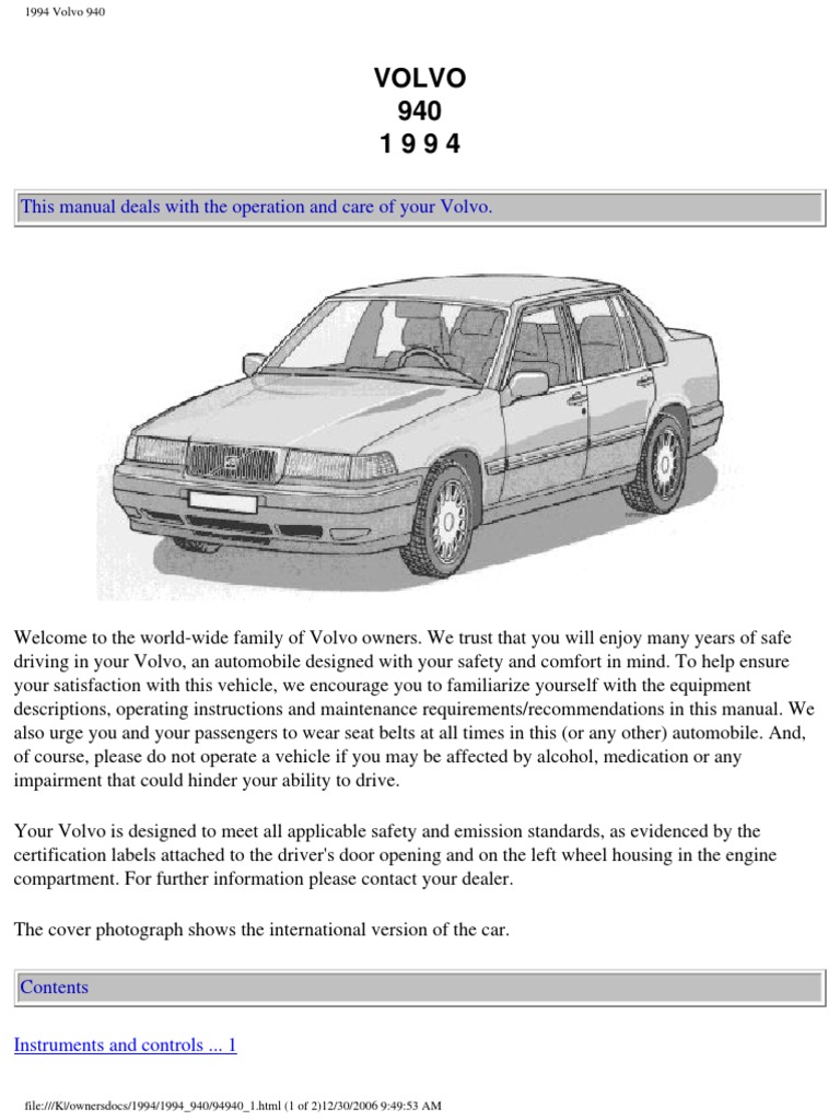 Volvo 940 1994 Owners Manual Compact Cassette Technology Engineering